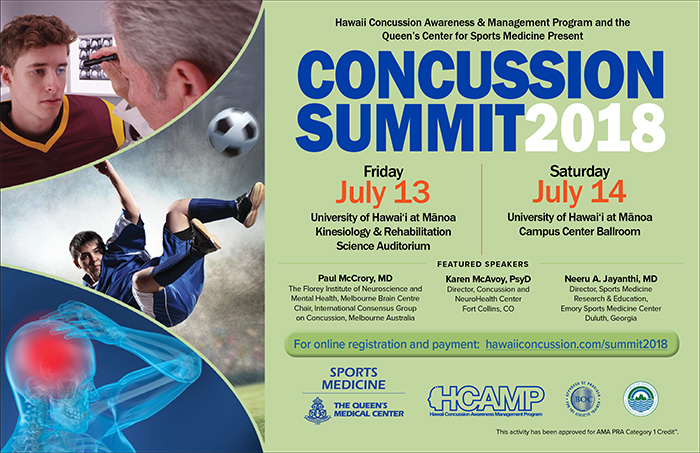 This activity has been planned and implemented in accordance with the accreditation requirements and policies of the Accreditation Council for Continuing Medical Education through the joint providership of The Queen's Medical Center and the Hawai'i Concussion Awareness Management Program. The Queen's Medical Center is accredited to provide continuing medical education for physicians.